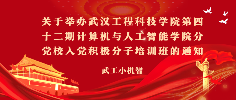 全面落实新时代党的建设总要求,做好入党积极分子的培养、教育和考察工作,现启动武汉工程科技学院第四十二期计算机与人工智能学院分党校入党积极分子培训班报名工作。