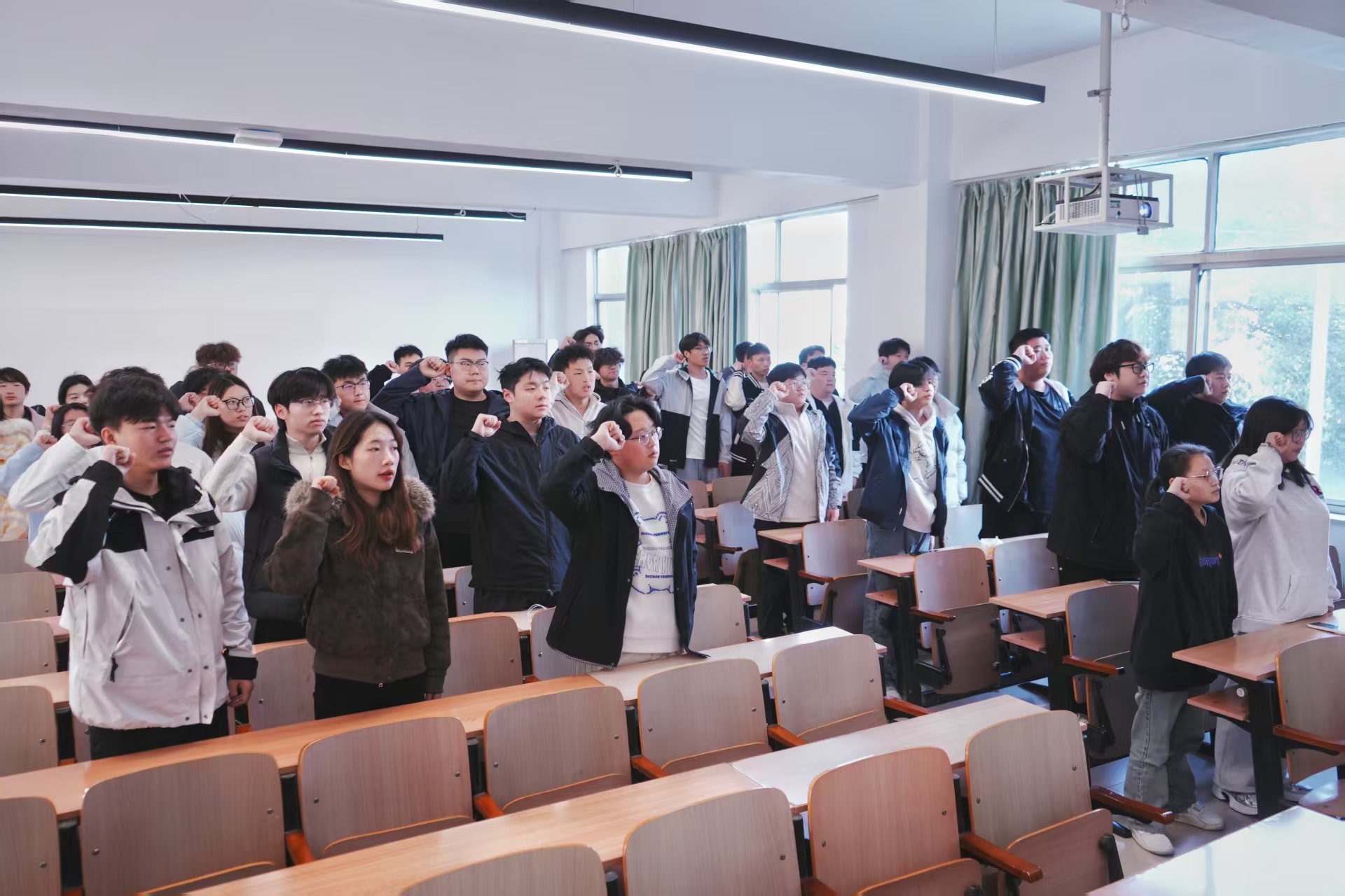分享结束后,由陈涛带领庄严宣誓,重温入团誓词,坚定理想信念。
