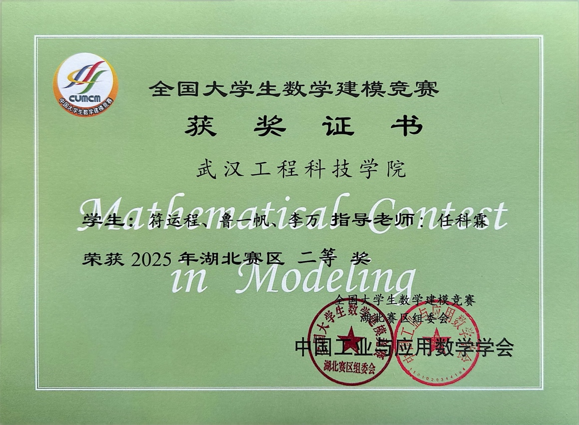 本网讯(通讯员任科霖)大学生数学建模竞赛创办于1992年,武汉工程科技学院的学子与众多公办高校同台竞赛,以及数学建模培训老师对数学模型指导培训。