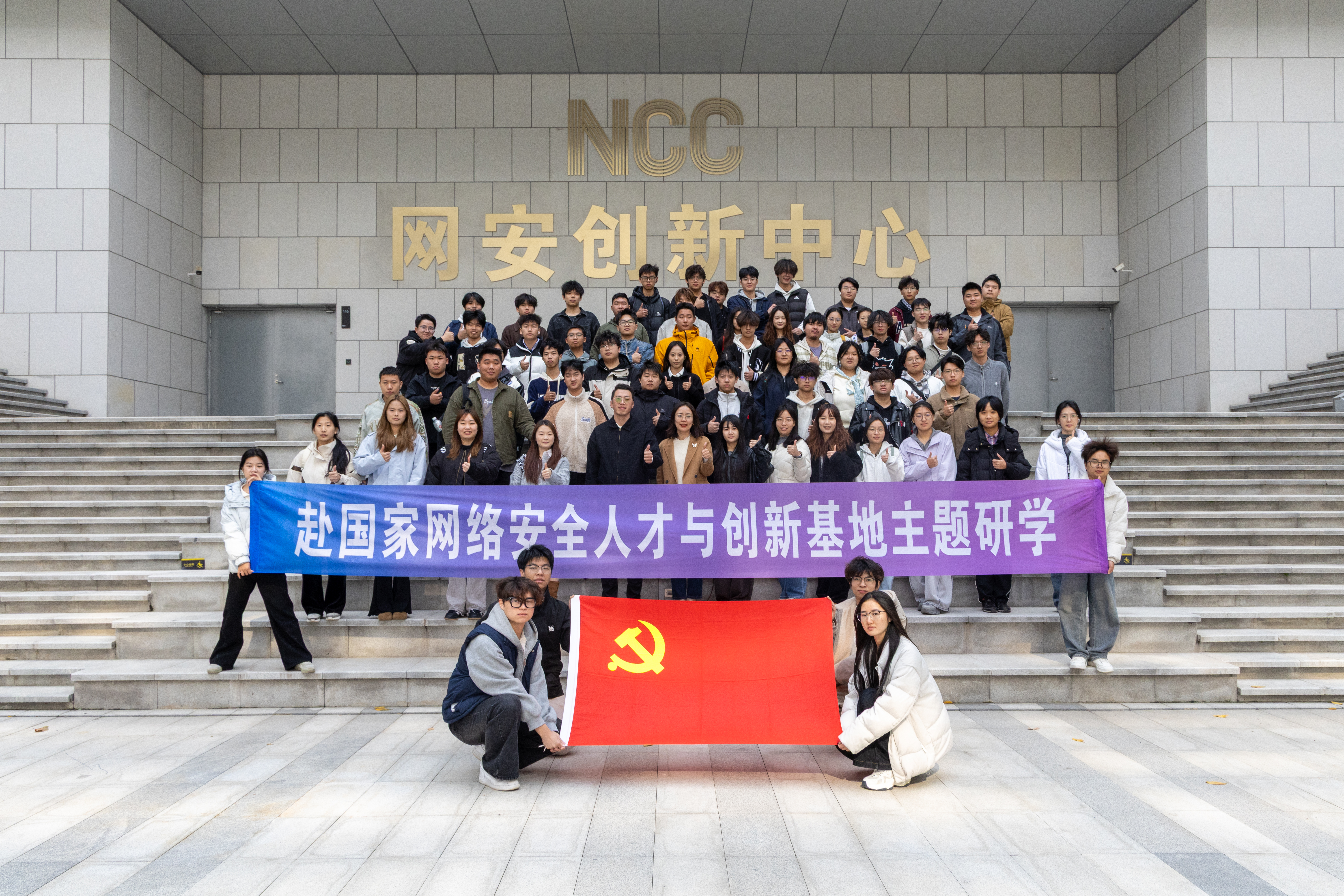 计算机与人工智能学院党总支书记钟晓星、教工第三党支部宣传委员朱静、学生第一党支部书记汤腾达、第二党支部书记章璇、学生第三党支部书记江月、教工党支部代表尤子卿、党务中心成员、学生党员、青马班学员走进国家网络安全人才与创新基地(NCC)360集团。