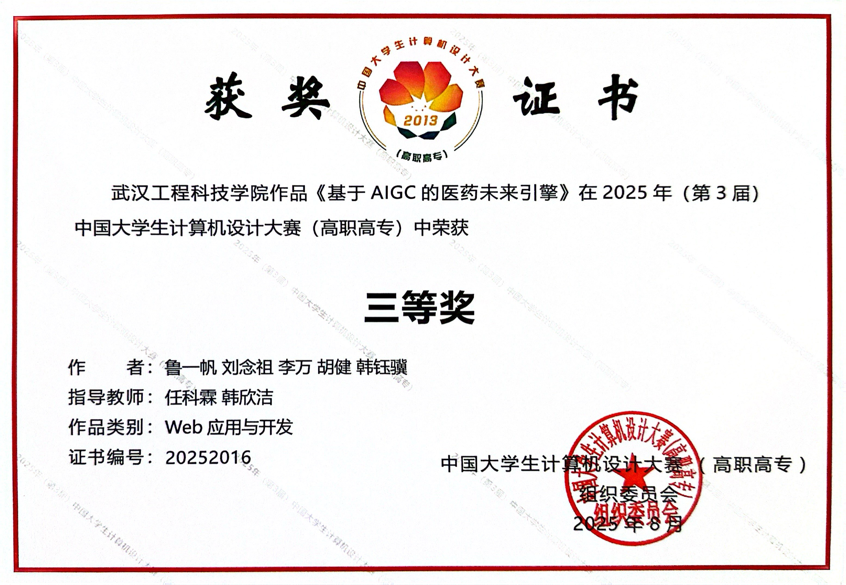 本网讯(通讯员 任科霖 王舒杭)第3届中国大学生计算机设计大赛(高职高专)—上海决赛,已于近日在上海出版印刷高等专科学校落下帷幕。经过激烈角逐,武汉工程科技学院计算机与人工智能学院学子王舒杭、张政涵、霍舒鹏、王梓四位同学组成,由任科霖和刘艳两位老师指导的团队参赛作品《存储资源动态分配监控系统》和鲁一帆、刘念祖、李万、胡健、韩钰骥五位同学组成,由韩欣洁和任科霖两位指导老师指导的参赛作品《基于AIGC的医药未来引擎》两个作品凭借扎实的技术功底与创新的设计理念,在激烈角逐中脱颖而出,最终都斩获国家级三等奖。这是学校在该赛事中的又一重要突破,更是青年学子用代码书写青春的生动注脚。