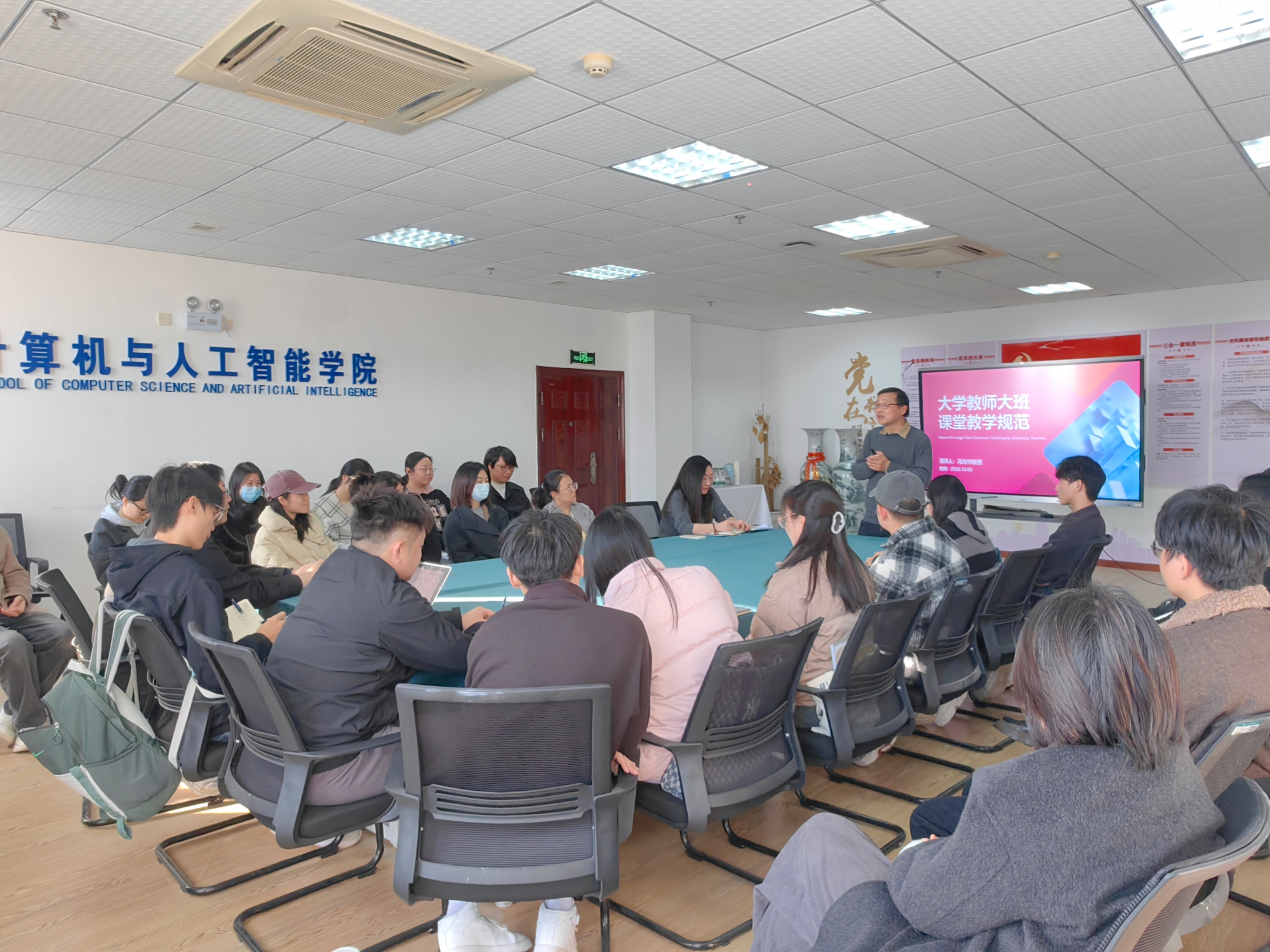 本网讯(通讯员 冯鹏芸)为强化教风建设、提升教师大班课堂教学能力,计算机与人工智能学院于2025年12月3日下午3点在综合楼1006 会议室举行 “教风建设之基础能力培训会”,本次培训会由教学质量中心冯光华教授主讲,学院全体青年教师参会学习,会议由副院长黎丽主持。