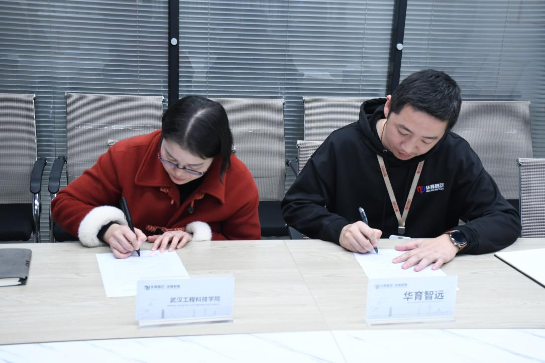 在充分沟通的基础上,双方代表共同签署了《校企合作基地框架协议书》,标志着校企合作进入实质性推进阶段。随后,“武汉工程科技学院实习实训基地”在华育智远正式挂牌成立,为后续学生实习、教师企业实践、科研项目协作奠定了坚实基础。