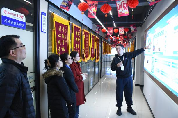 华育智远实训中心总监唐凯、培训中心总监刘晓旻对学院教师团队的到访表示热烈欢迎。唐凯总监陪同我校教师参观了企业办公环境,详细介绍了公司的发展历程、核心业务、企业理念,以及与其他高校的成功合作模式。华育智远作为一家专注于企业数字化转型与信息化建设的高新技术企业,注册资本600万元,办公面积约1500平方米,在信息技术服务领域具有扎实的产业实践基础。